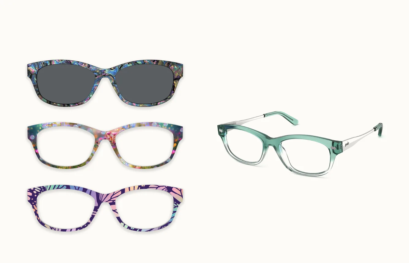 We offer a variety of lenses, including prescription, non-prescription, readers, sunglasses, and progressives. You can also customize your lenses with blue-light filtering or light responsive features!