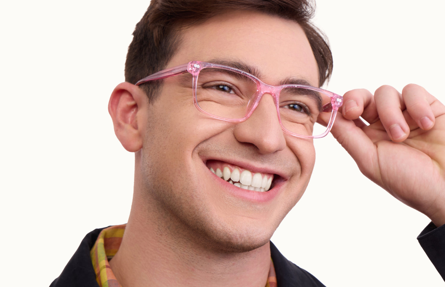 $59.50 FreeThe Kirby is made of hand-polished, flexible, and durable acetate. This rosy pink acetate features glimmering glitter throughout.